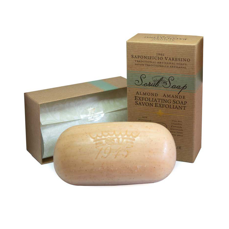 Saponificio Varesino Savon corporel exfoliant "Almond", enrichi en coquilles d'amandes micronisées pour lisser votre peau.